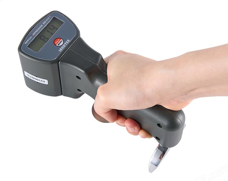 手握硬度计,使压针头部与支脚同时接触试样表面。以均匀速度施加压力,直至屏幕显示峰值读数(约2-3秒)。对于软材料(如纯铝),需增加测量次数(建议3-5次)以降低离散性。